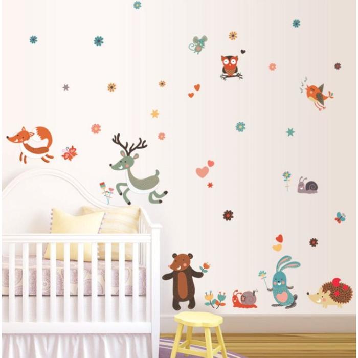 Наклейка пластик интерьерная цветная "Милые лесные зверушки" 50х70 см