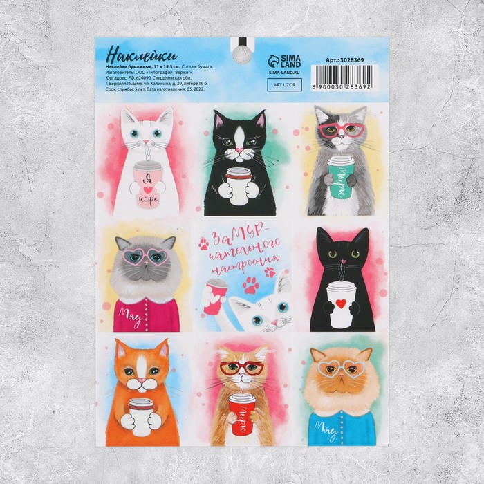 Наклейки детские «Время котиков», 11 х 15.5 см