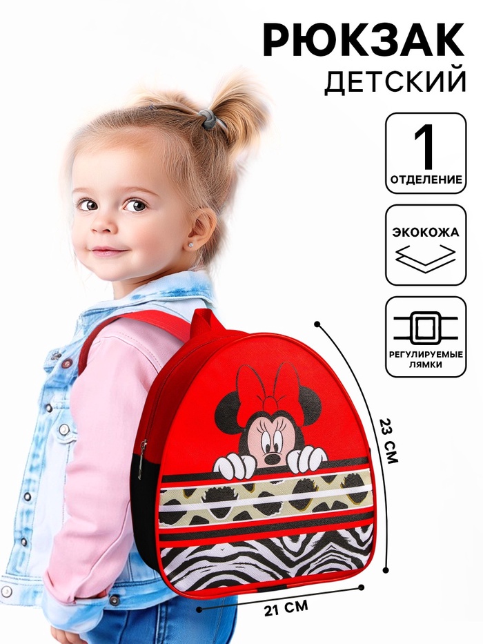 Рюкзак детский для девочки на молнии, красный, 23х21х10 см, Минни Маус - товар, который Вы можете приобрести в нашем интернет-магазине. Заказ могут оформить как юридические, так и физические лица. Бесплатная доставка по Астане, также, отправляем по РК.