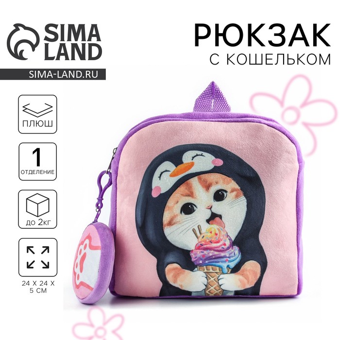 Рюкзак детский плюшевый с кошельком «Котик с мороженкой», 24×24 см - товар, который Вы можете приобрести в нашем интернет-магазине. Заказ могут оформить как юридические, так и физические лица. Бесплатная доставка по Астане, также, отправляем по РК.