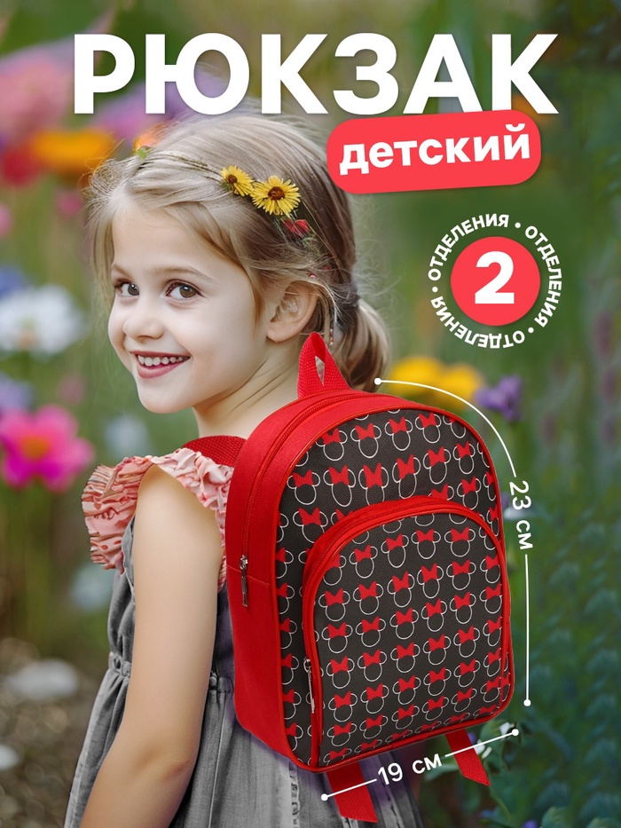 Рюкзак детский для девочки с карманом, 23×19×6 см, Минни Маус - товар, который Вы можете приобрести в нашем интернет-магазине. Заказ могут оформить как юридические, так и физические лица. Бесплатная доставка по Астане, также, отправляем по РК.