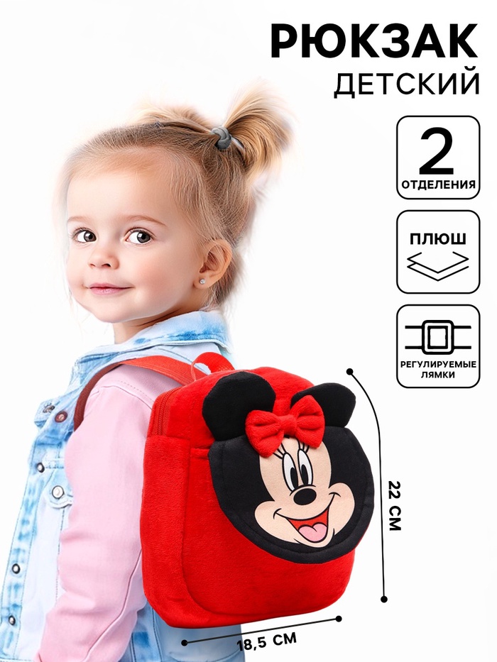 Рюкзак детский для девочки, плюшевый на молнии, с карманом, 19х22 см, Минни Маус - товар, который Вы можете приобрести в нашем интернет-магазине. Заказ могут оформить как юридические, так и физические лица. Бесплатная доставка по Астане, также, отправляем по РК.
