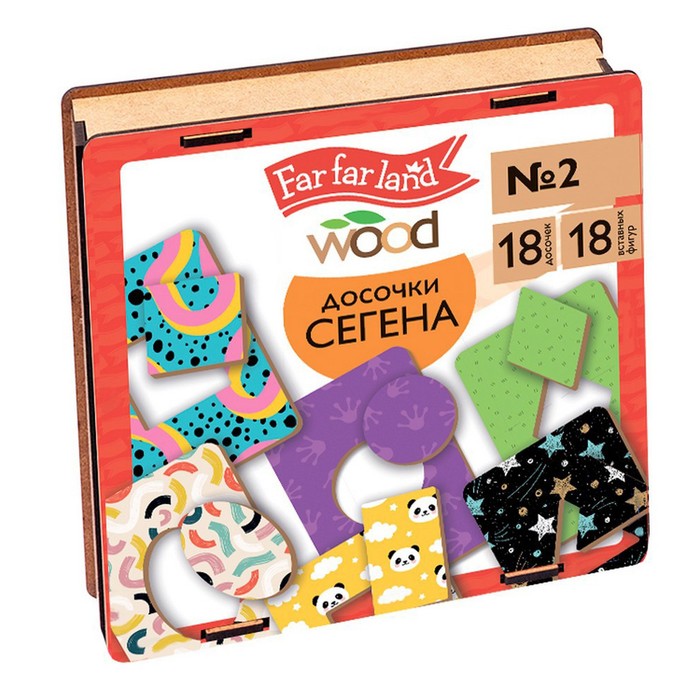 Данная игра — усложненный вариант набора «Досочки Сегена» № 1, так как в ней нужно подбирать пазлы-вкладыши по цвету, форме и рисунку.