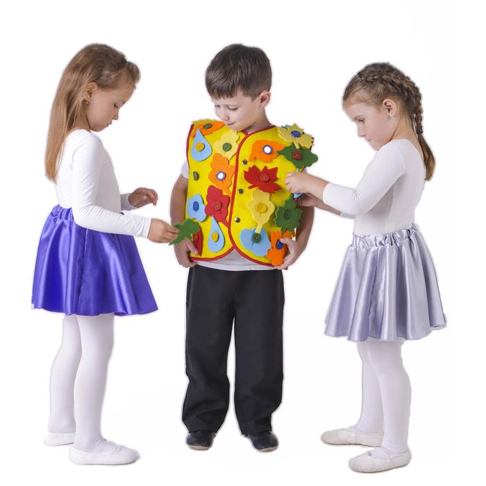 Жилет застёгивается на 3 кнопки, длина изделия — 42 см, ширина — 43 см (полуобхват). На жилете поставлены основы для кнопок, 32 шт.