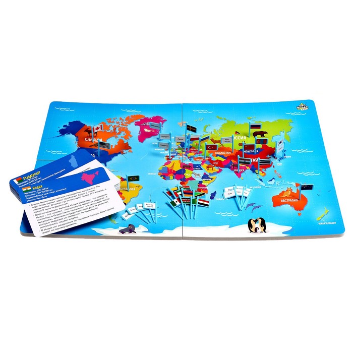 Вместе с ребёнком изучайте страну, находите её на карте и устанавливайте флажки в специальные отверстия.