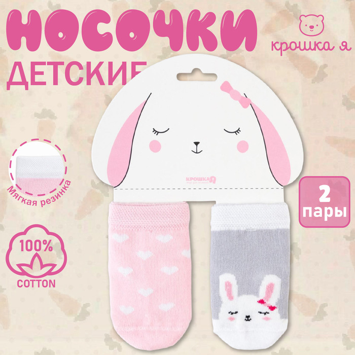Носки детские Крошка Я «Зайчонок», набор 2 пары, 12-14 см