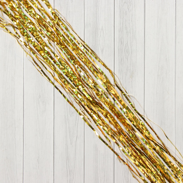 Этот дождик добавляет дереву и стенам ощущение мерцающего света и доброжелательного настроения. Золотые полосы работают как самостоятельный элемент декора или фон для других игрушек. Используйте его как основу убранства или как дополнение к уже готовой композиции — он одинаково хорошо усиливает атмосферу Нового года и семейного тепла.