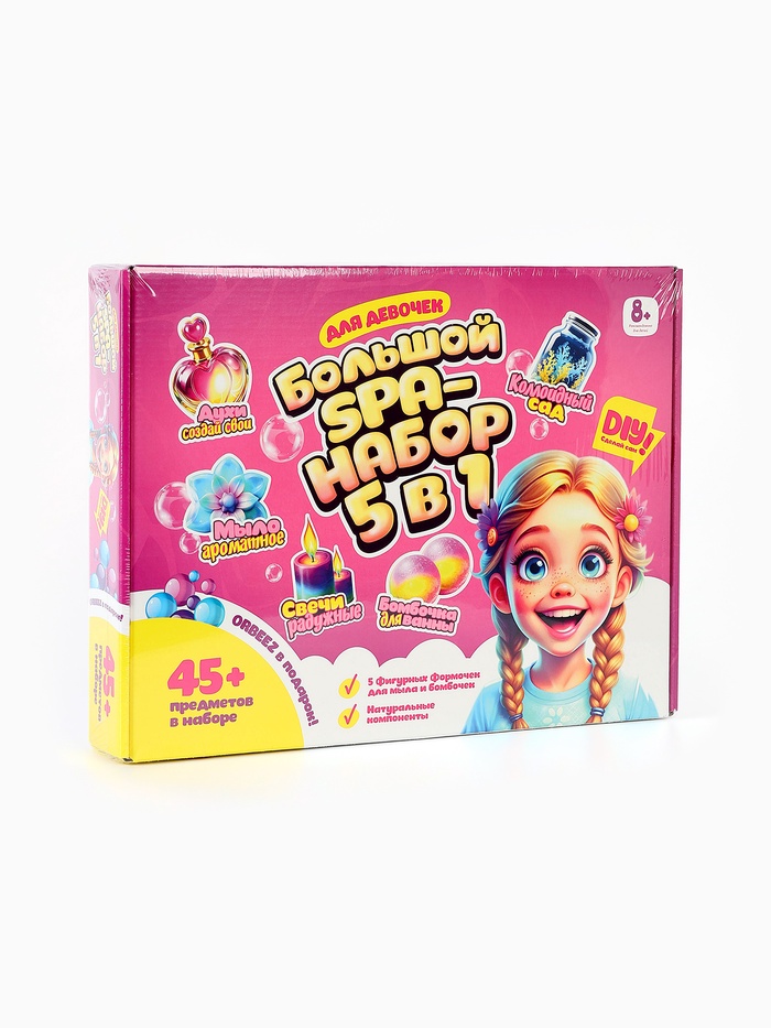 Погрузитесь в атмосферу творчества и ароматных экспериментов вместе с Большим SPA-набором. Он создан специально для девочек, которые мечтают создавать собственные ароматные и уходовые средства. Набор превращает простой процесс смешивания ингредиентов в увлекательную игру и помогает ребёнку почувствовать себя настоящим мастером.
