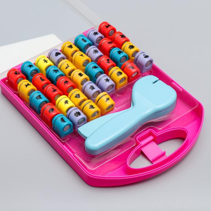 Такой набор будет настоящим подарком для тех, кто занимается популярным сегодня скрапбукингом. В нем содержатся кассетный дырокол и 36 сменных блоков d=0,8 см, с помощью которых вы легко и просто сможете вырезать из бумаги звездочки, цветочки и другие элементы. Для обеспечения безопасности в работе режущие части дырокола закрыты пластмассовым корпусом. Дырокол снабжен специальным накопителем конфетти. Пользоваться им чрезвычайно легко и удобно: расположите бумажный лист между пластин, нажмите на ручку и получите фигурное отверстие в бумаге и конфетти в наполнителе. Если вы хотите заточить дырокол, можно воспользоваться обыкновенной фольгой – прокомпостировать ее несколько раз. Для того чтобы качество работы дыроколов оставалось на высоте, будет полезно время от времени пройтись дыроколом по бумаге для выпечки. После заточки или разработки дыроколов перед тем, как приниматься непосредственно за работу, лучше опробовать их на обычной бумаге, чтобы убедиться, что они не оставляют следов. Рекомендуемая плотность бумаги – не больше 160г/м2. Дайте простор своему воображению!
