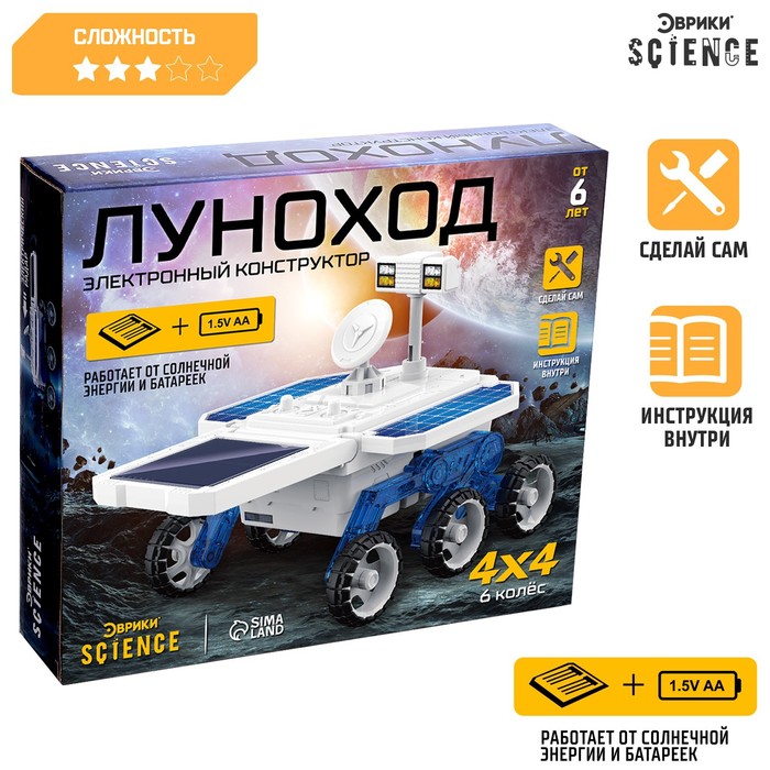 С набором «Эврики» ребёнок соберёт луноход, способный преодолевать препятствия, ведь у него 6 колёс!