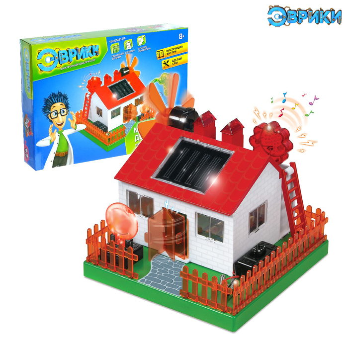 Сборка домика поможет в развитии мелкой моторики, логики, мышления и воображения. А в процессе увлекательной игры маленький исследователь познакомится с принципом работы электричества, узнает, как функционирует солнечная панель и ручной генератор. Ваш ребёнок будет в восторге!