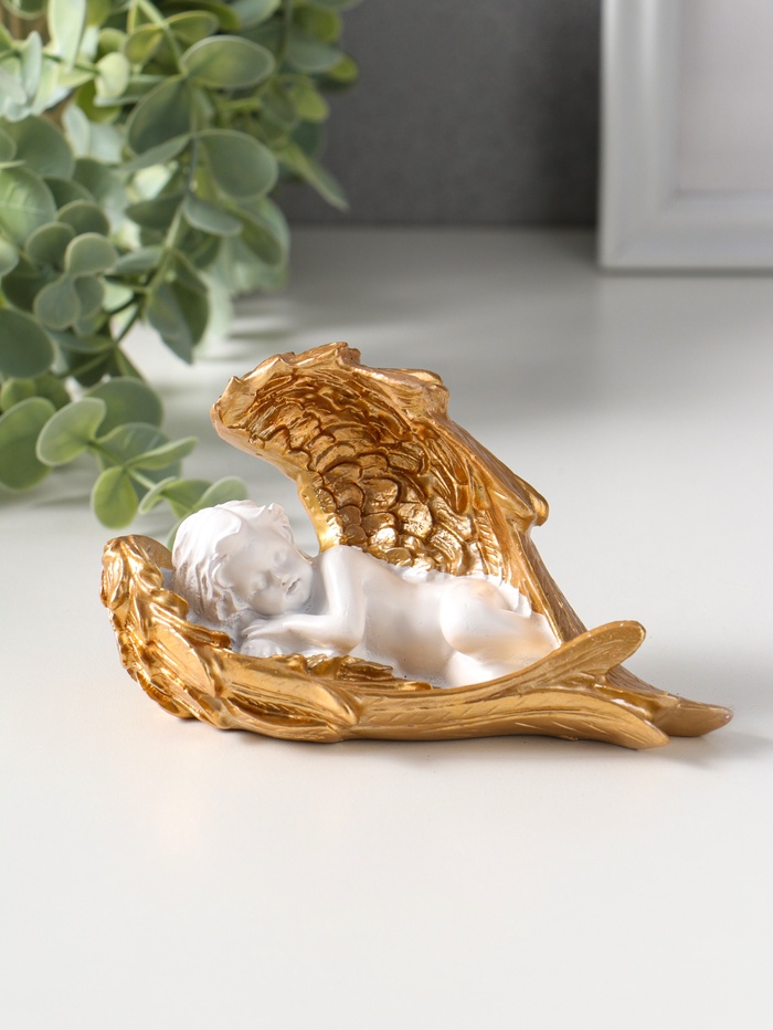 Эта фигурка спящего ангела — воплощение нежного покоя и светлой надежды. Изготовленная из прочного полистоуна, она передаёт тончайшие детали: мягкие складки одеяния, умиротворённое выражение личика, изящные перья крыльев с деликатным золотым покрытием. Компактный размер делает её универсальным элементом декора для создания уютной и духовной атмосферы в любом уголке дома.
