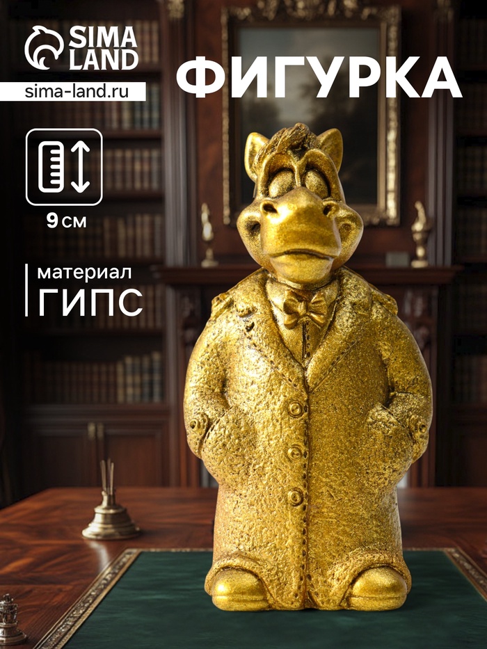 Представляем вашему вниманию изысканную фигурку, которая станет не просто украшением, но и источником вдохновения в вашем доме. Эта миниатюрная композиция, выполненная в виде коня в пальто, сочетает в себе элегантность классики и современный шарм, привлекая внимание своей уникальностью и благородным золотистым оттенком.