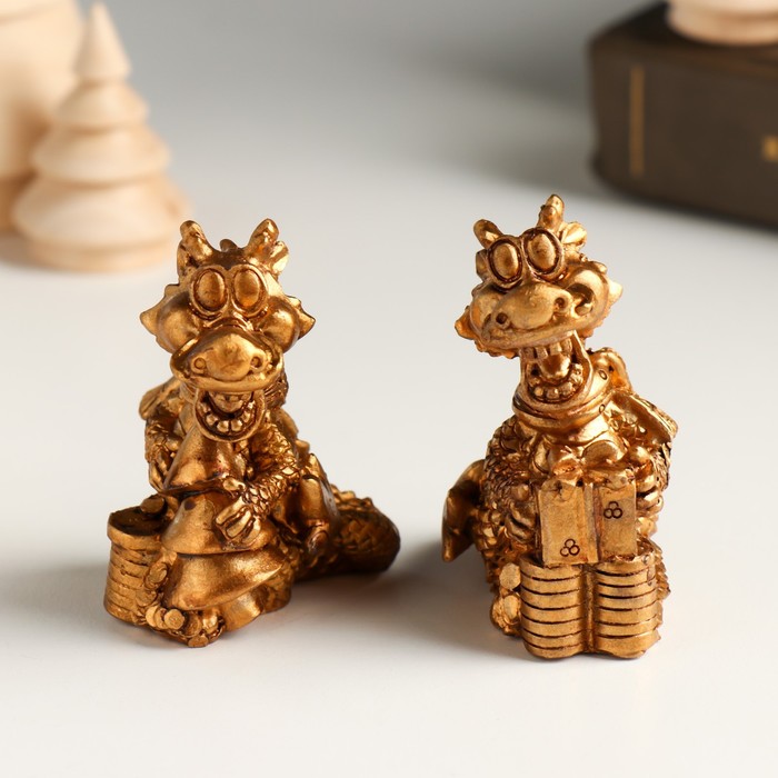 Сувенир полистоун "Бронзовый дракон в шарфике с монетами" МИКС 4,8х4,3х6 см