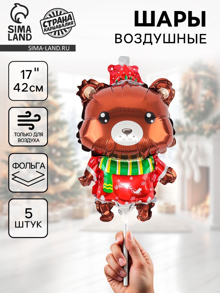 Воздушные шары фольгированные 17" «Новогодний мишка», 5 шт., для палочек - товар, который Вы можете приобрести в нашем интернет-магазине. Заказ могут оформить как юридические, так и физические лица. Бесплатная доставка по Астане, также, отправляем по РК.