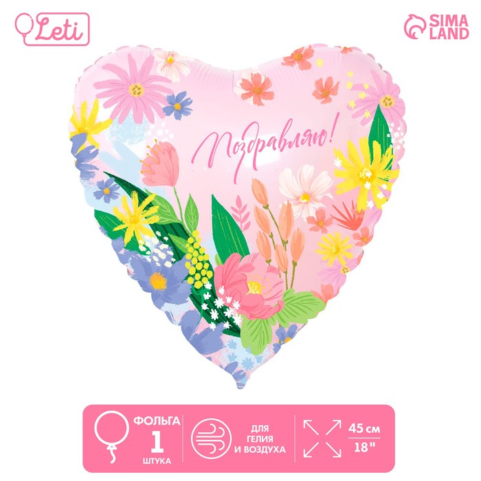 Фольгированный шар в виде сердца с надписью «Поздравляю!» — дополнение, которое подойдёт к любому подарку. Вы можете взять несколько шаров и соорудить из них арку или гирлянду. Воздушные шары — простой и удобный способ оформить помещение для мероприятия.