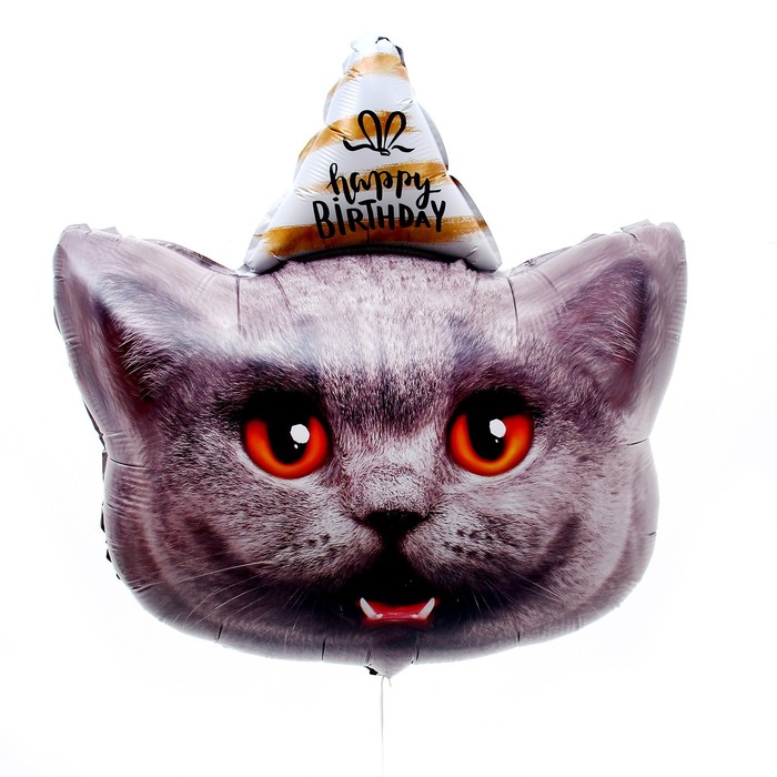 Фольгированный шар в виде милого кота с колпаком, на котором написано «Happy birthday» станет отличным дополнением к подарку на День рождения. Воздушный шар можно использовать как атрибут для фотосессии или в качестве декора для помещения.