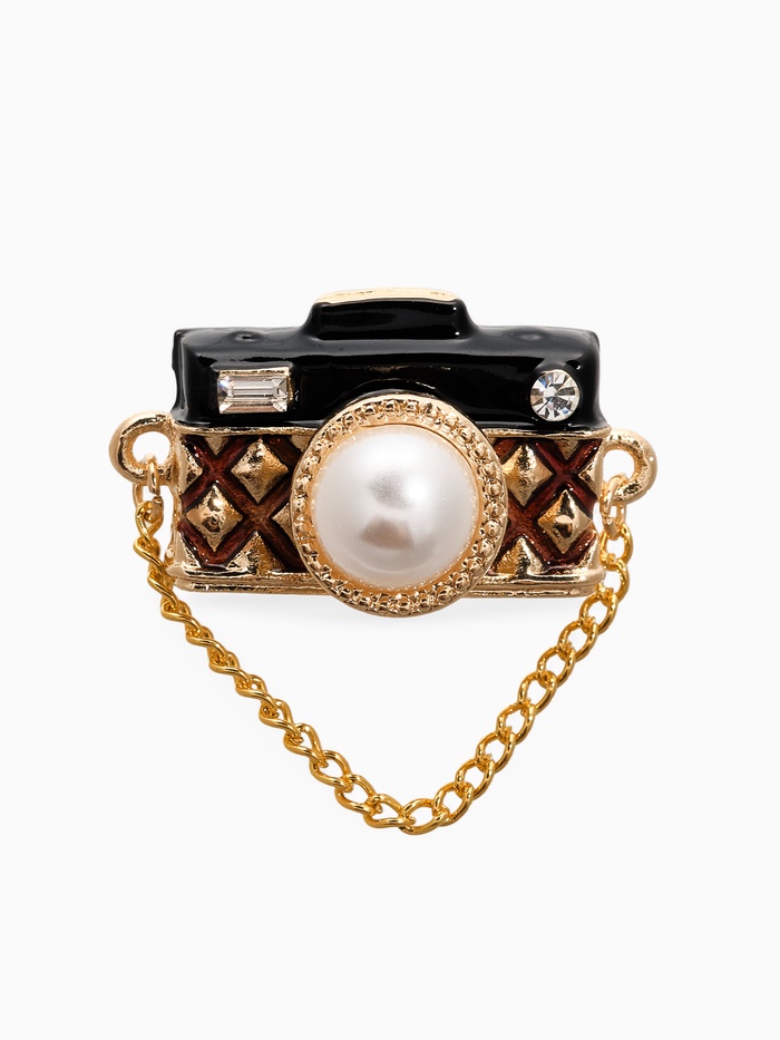 Погрузитесь в мир творческих увлечений и фотосъемки с оригинальной брошью в виде фотоаппарата, собранной из классических черных и коричневых тонов, помещенных в изысканную золотую раму. Этот необычный аксессуар понравится девушкам, увлекающимся фотографией, и превратит повседневный образ в творческий и динамичный.
