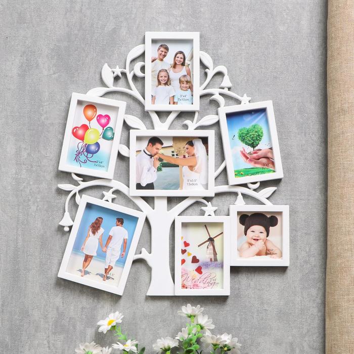 Фоторамка на 7 фото 7х7 см, 7х10 см, 13х9 см "Дерево желаний" белая 36х31 см — оригинальный подарок на День святого Валентина, годовщину, свадьбу или другое значимое для вас событие. Фоторамка, которая расскажет об искренних и теплых чувствах. И, возможно, она станет началом для создания вашего совместного генеалогического древа.