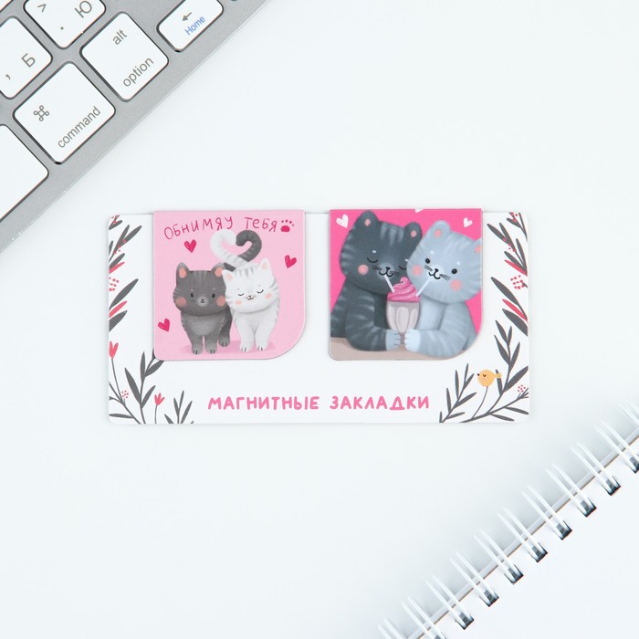 Магнитные закладки 2 шт, 4х4см, на подложке «Котики»