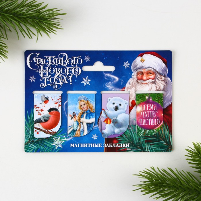 Закладки для книг магнитные «Счастливого нового года», 4 шт мини