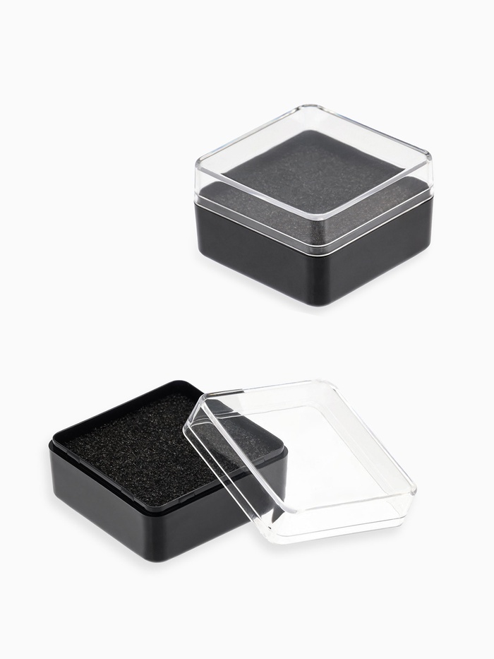 Футляр компактных размеров (всего 4.1 x 4.1 x 2.4 см) легко поместится в любой карман или сумку, позволив держать украшения под рукой и защищать их от повреждений и пыли. Прозрачная крышка, оснащённая внутренней подложкой, делает содержимое футляра легко доступным и наглядным, экономя время на поиски нужных предметов.