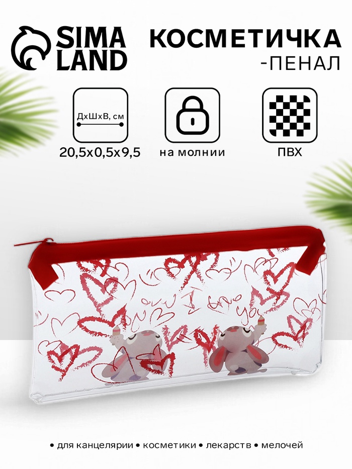 Косметичка-пенал на молнии, с рисунком, прозрачная/красная - товар, который Вы можете приобрести в нашем интернет-магазине. Заказ могут оформить как юридические, так и физические лица. Бесплатная доставка по Астане, также, отправляем по РК.