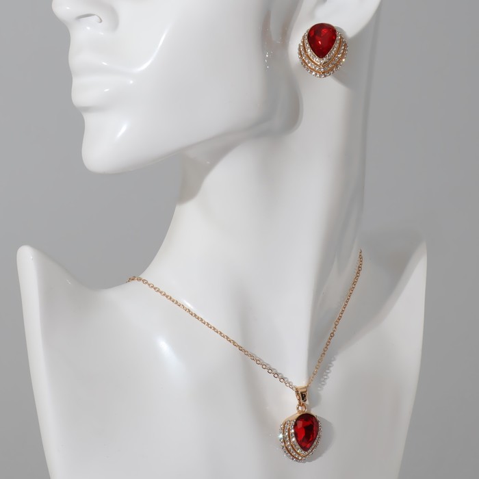 Гарнитур 2 предмета: серьги, кулон «Эдель» трио капель, цвет красно-белый в золоте, 50 см - товар, который Вы можете приобрести в нашем интернет-магазине. Заказ могут оформить как юридические, так и физические лица. Бесплатная доставка по Астане, также, отправляем по РК.