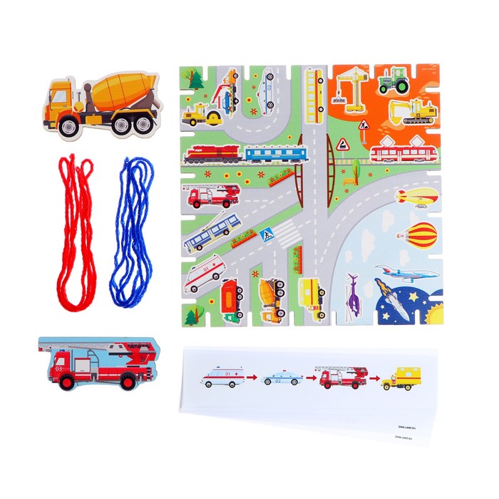 Суть игры - повторить путь со схемы на доске с помощью нити. Выберите с ребёнком фигурку, которой будете играть, обмотайте её ниткой. Затем предложите малышу выбрать схему. Разматывайте нить, зацепляя её за выемки на доске согласно схеме.