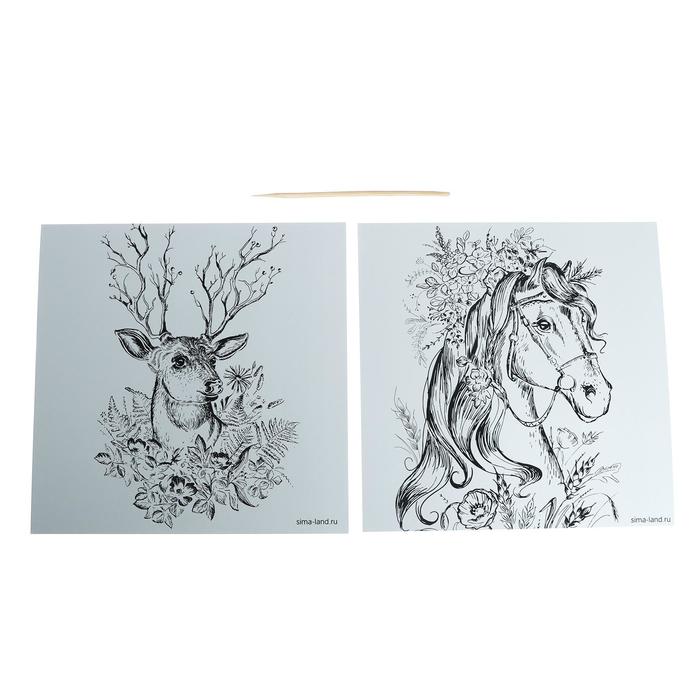 Гравюра представляет собой многослойное панно, покрытое чёрной краской, на которое нанесён контур рисунка. С помощью особого скребка (штихеля), который входит в набор, путём процарапывания и создается гравюра. Новая серия с уникальным дизайном порадует вас разнообразием рисунков.