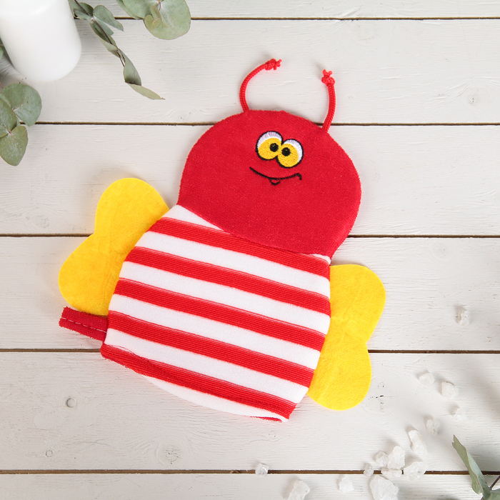 Мочалка совмещает достоинства бытового помощника и яркой игрушки. Имеющая мягкую тканевую основу, оригинальная модель предназначена для бережного очищения чувствительной кожи детей.