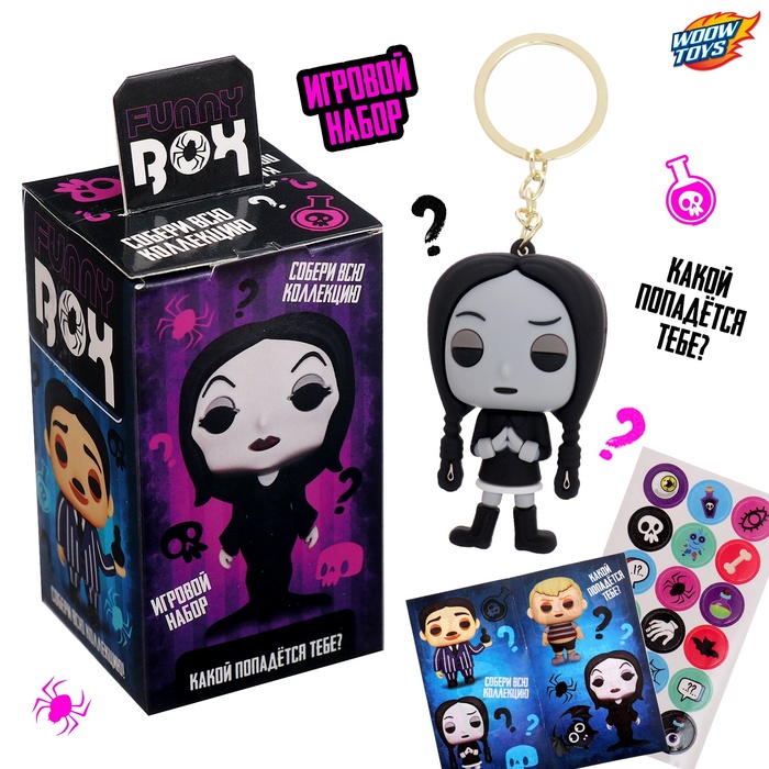Игрушка-сюрприз Funny box «Мрачная семейка» — это увлекательный набор для детей от 3 лет, который подарит радость от открытия и игры. Внутри коробки скрывается интересный брелок и наклейки с любимыми героями, создавая атмосферу сюрприза и вдохновения.