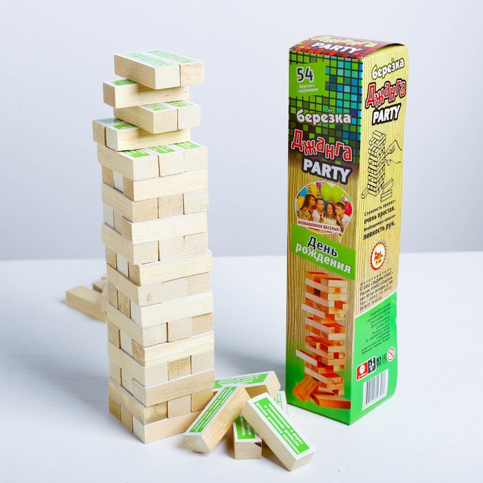 Падающая башня "Березка - День рождения", 54 бруска, макси