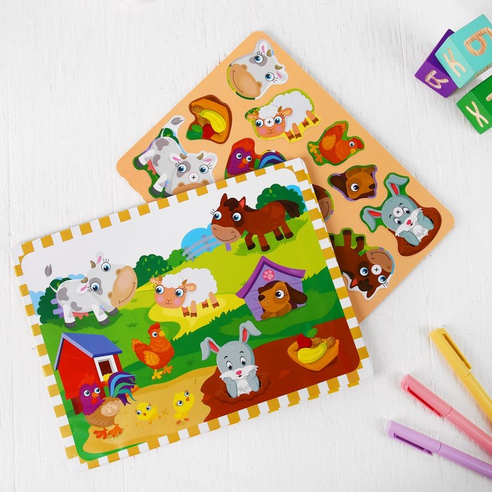 Суть игры заключается в том, чтобы малыш подобрал вкладыш с изображением животного и прикрепил на место его жилища.