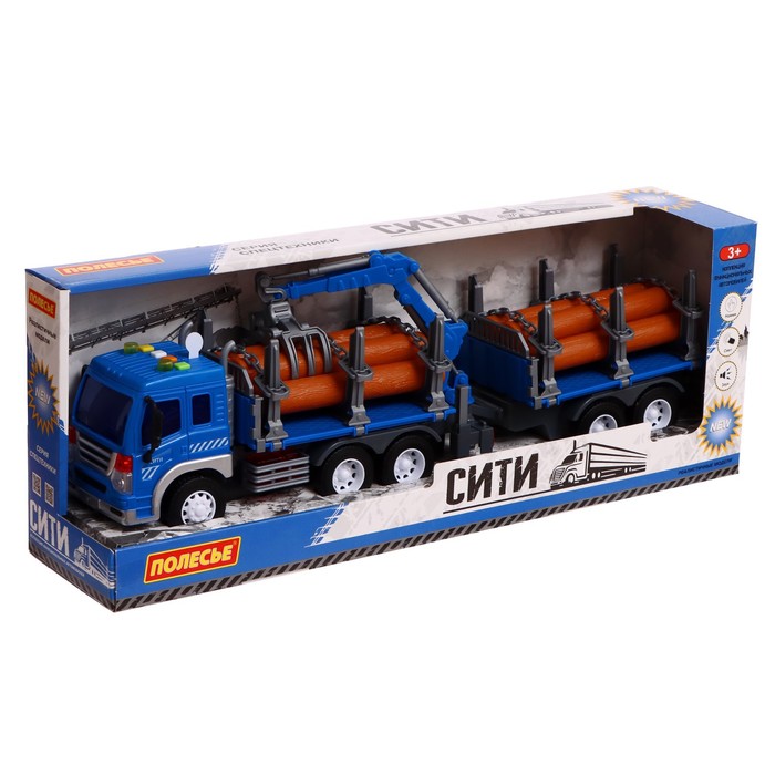 Автомобиль-лесовоз инерционный «Сити» с прицепом, свет, звук, цвет синий