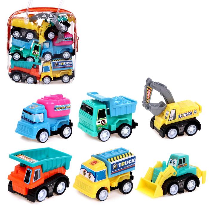 Набор строительной техники включает 6 машин с инерционным механизмом, упакованных в удобную сумку. В комплекте трактор, грузовик и экскаватор — всё необходимое для масштабных строек прямо дома!