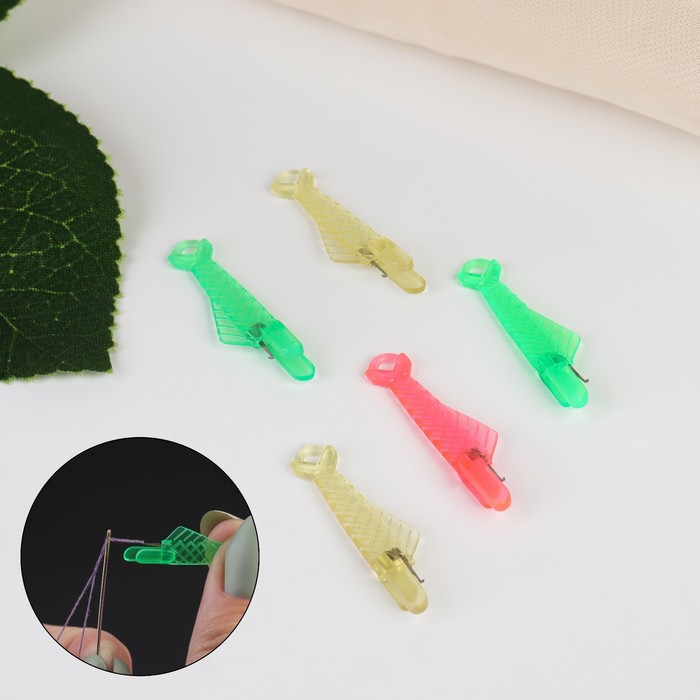 В набор входят 5 разноцветных нитевдевателей. Обратите внимание, цвет товара «микс». Это значит, что при заказе вы не выбираете конкретный цвет изделия. На фотографиях могут быть представлены не все варианты.