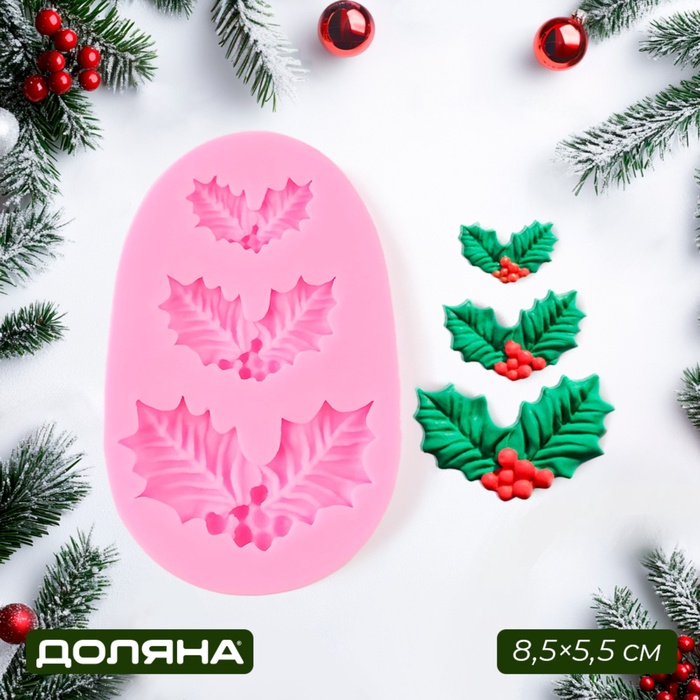 Молд для заливки новогодний Доляна «Ягодки и листочки», силикон, 8,5×5,5 см, розовый
