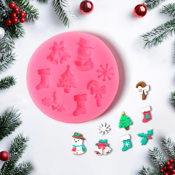 Молд для заливки новогодний «Новогодняя атрибутика», силикон, 6,5×6,5 см, цвет розовый