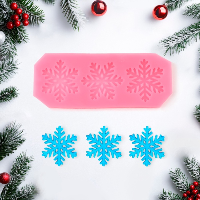 Молд для заливки новогодний «Снежинки», силикон, 17,5×6,8×0,5 см, цвет розовый