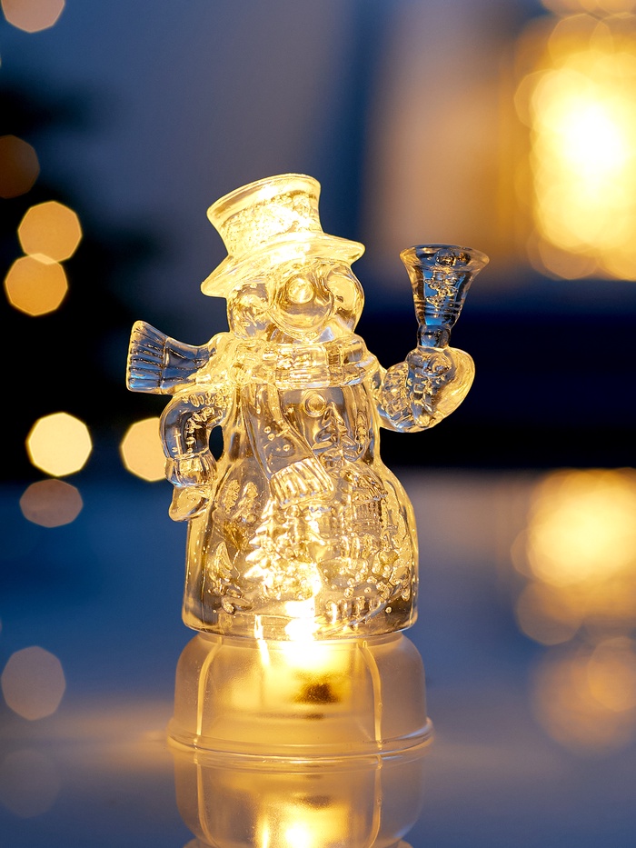 Эта световая фигурка в форме снеговика высотой 13 см станет уютным акцентом в вашем новогоднем интерьере. Выполненная из прочного пластика, она оснащена светодиодом с тёплым белым свечением, которое мягко и равномерно освещает пространство, создавая атмосферу домашнего тепла и праздника.