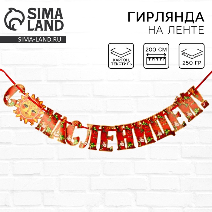 Гирлянда на ленте «С масленицей!», 200 см - товар, который Вы можете приобрести в нашем интернет-магазине. Заказ могут оформить как юридические, так и физические лица. Бесплатная доставка по Астане, также, отправляем по РК.