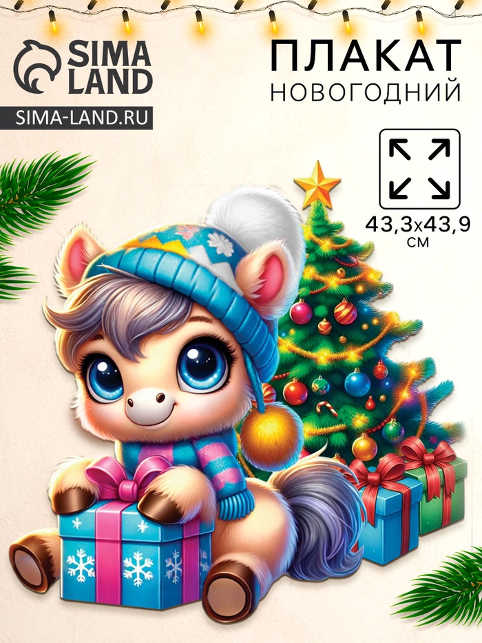 Плакат новогодний «С новым годом», лошадка у ёлки, 43.3×43.9 - товар, который Вы можете приобрести в нашем интернет-магазине. Заказ могут оформить как юридические, так и физические лица. Бесплатная доставка по Астане, также, отправляем по РК.
