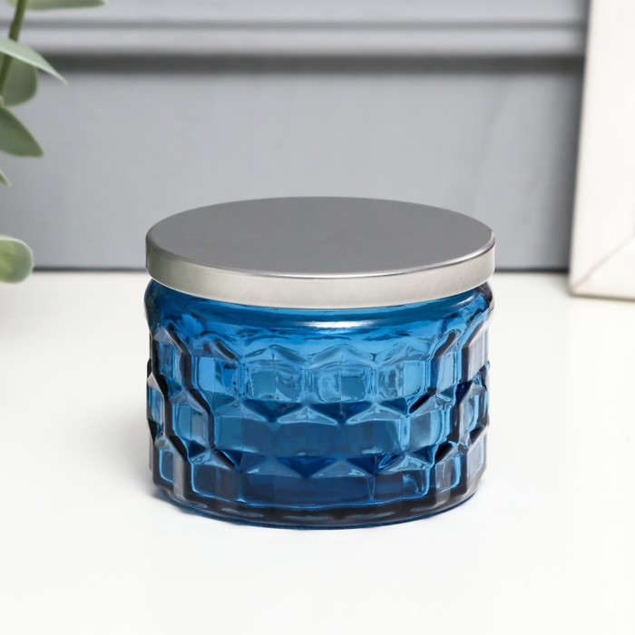 Банка для свечей стекло с крышкой "Соты" синяя 5х7х7 см, МИКС