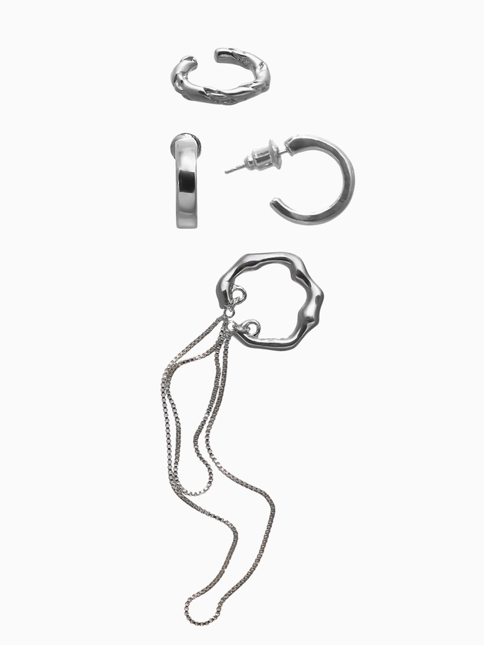 Каждое изделие выполнено из качественного металла с серебристым покрытием, что гарантирует долговечность и сохранение блеска даже при регулярном использовании. Лёгкость и комфорт ношения обеспечивают удобные застёжки пусет и практичные каффы, позволяющие экспериментировать с образом без необходимости делать дополнительные проколы.