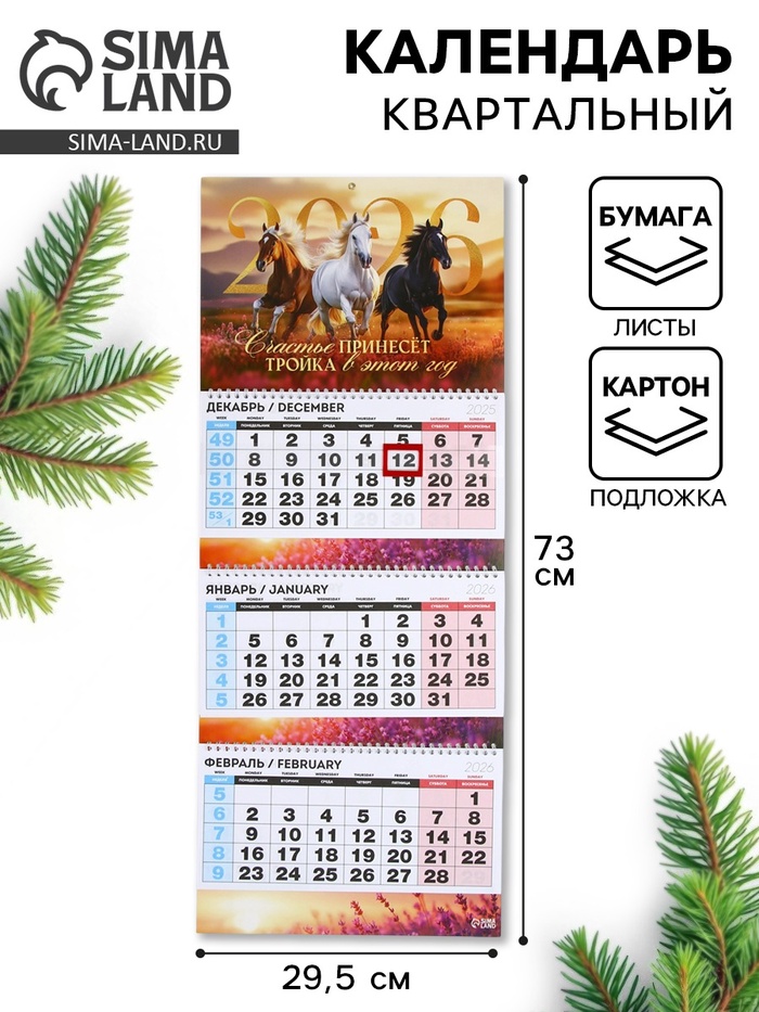 Календарь настенный квартальный 2026 «Тройка лошадей» - товар, который Вы можете приобрести в нашем интернет-магазине. Заказ могут оформить как юридические, так и физические лица. Бесплатная доставка по Астане, также, отправляем по РК.