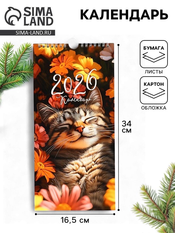 Календарь 2026 на ригеле «Кот в цветах» 16.5×34 см - товар, который Вы можете приобрести в нашем интернет-магазине. Заказ могут оформить как юридические, так и физические лица. Бесплатная доставка по Астане, также, отправляем по РК.