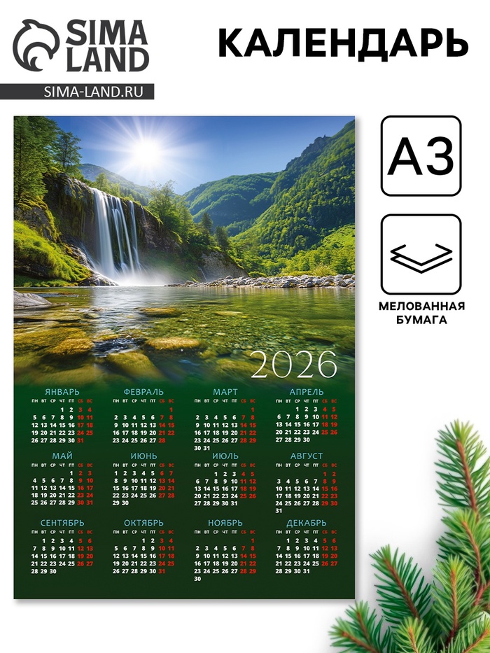 Календарь 2026 «Водопад», А3 - товар, который Вы можете приобрести в нашем интернет-магазине. Заказ могут оформить как юридические, так и физические лица. Бесплатная доставка по Астане, также, отправляем по РК.