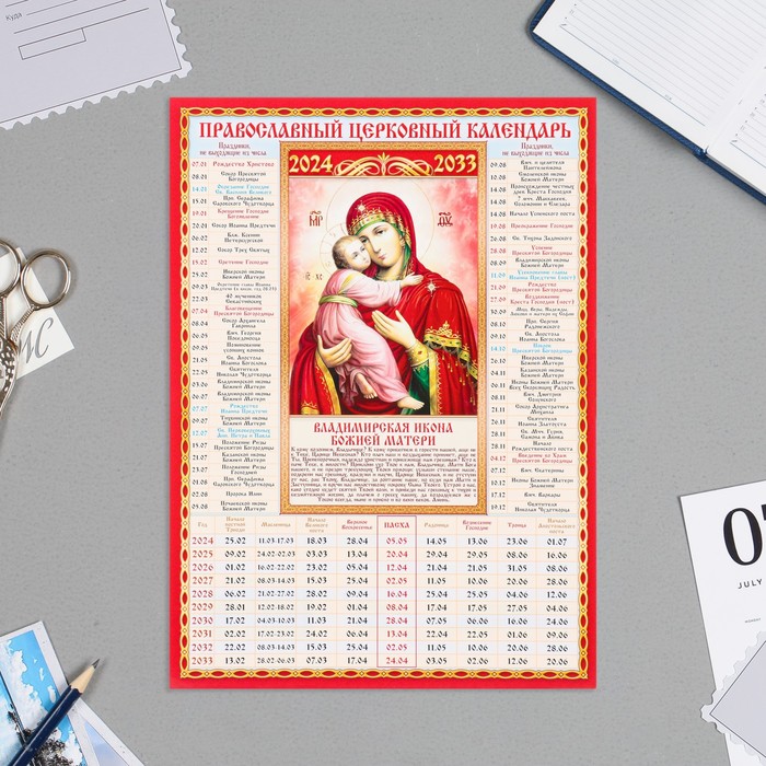 Календарь церковных праздников 10 лет "Владимирская икона Божией Матери" 2024 год, картон, 21х30 см, - товар, который Вы можете приобрести в нашем интернет-магазине. Заказ могут оформить как юридические, так и физические лица. Бесплатная доставка по Астане, также, отправляем по РК.