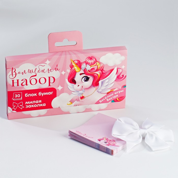 Подарочный набор в чемоданчике: заколка и блок листов « Волшебный Подарочный набор с единорогом» - товар, который Вы можете приобрести в нашем интернет-магазине. Заказ могут оформить как юридические, так и физические лица. Бесплатная доставка по Астане, также, отправляем по РК.